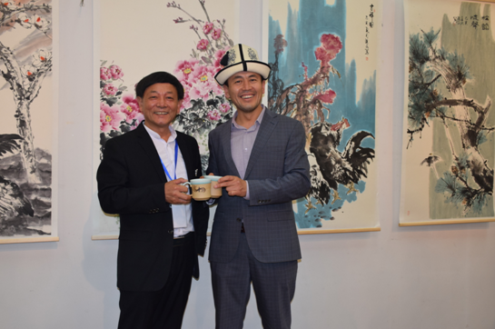 董事長(zhǎng)王新軍與吉爾吉斯斯坦文化部部長(zhǎng)合影留念